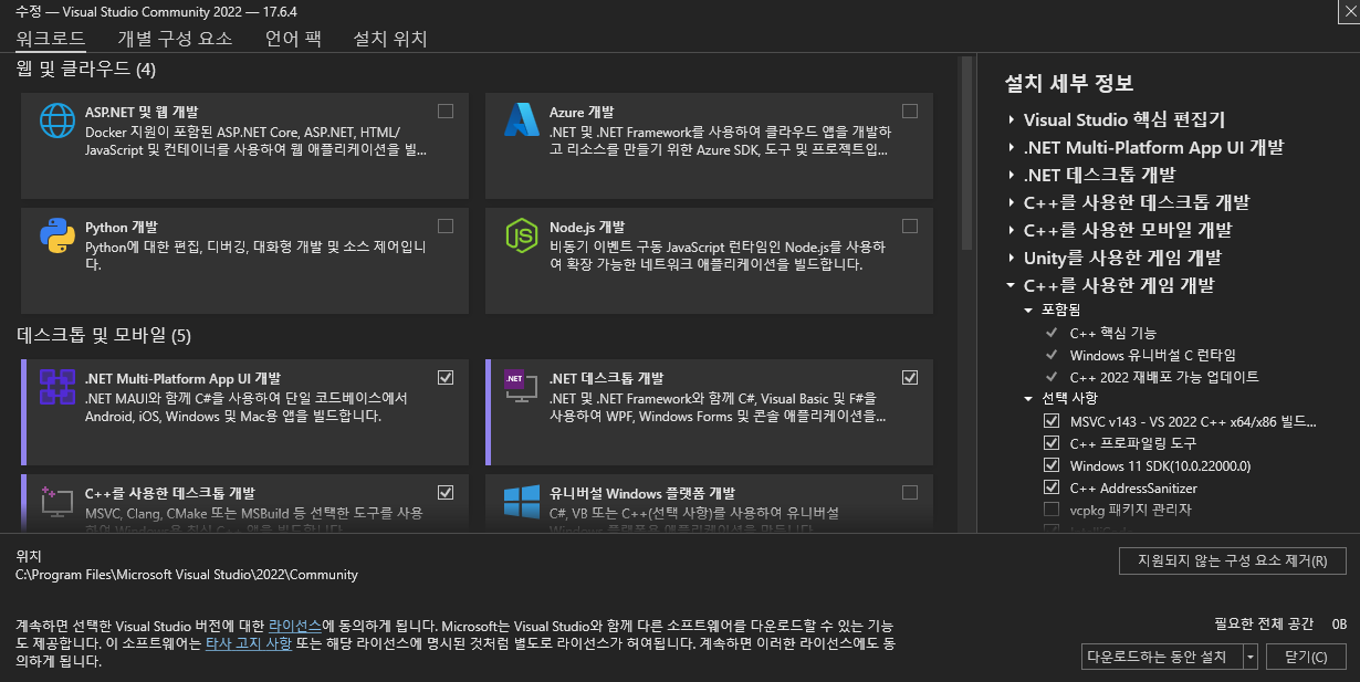[C/C++/C#] Visual Studio 2022 설치 본문