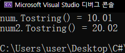 Console.WriteLine($"num2.Tostring() = {num2.ToString()}");