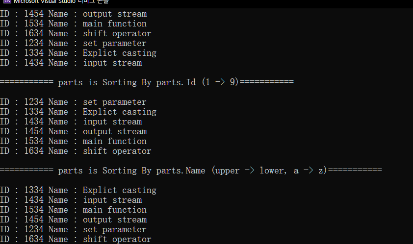 Console.WriteLine("\n=========== parts is Sorting By parts.Id (1 -> 9)===========\n");