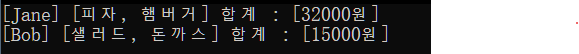 Console.WriteLine($"[{row["Name"]}] [{row["Menu"]}] 합계 : [{row["Price"]}원]");